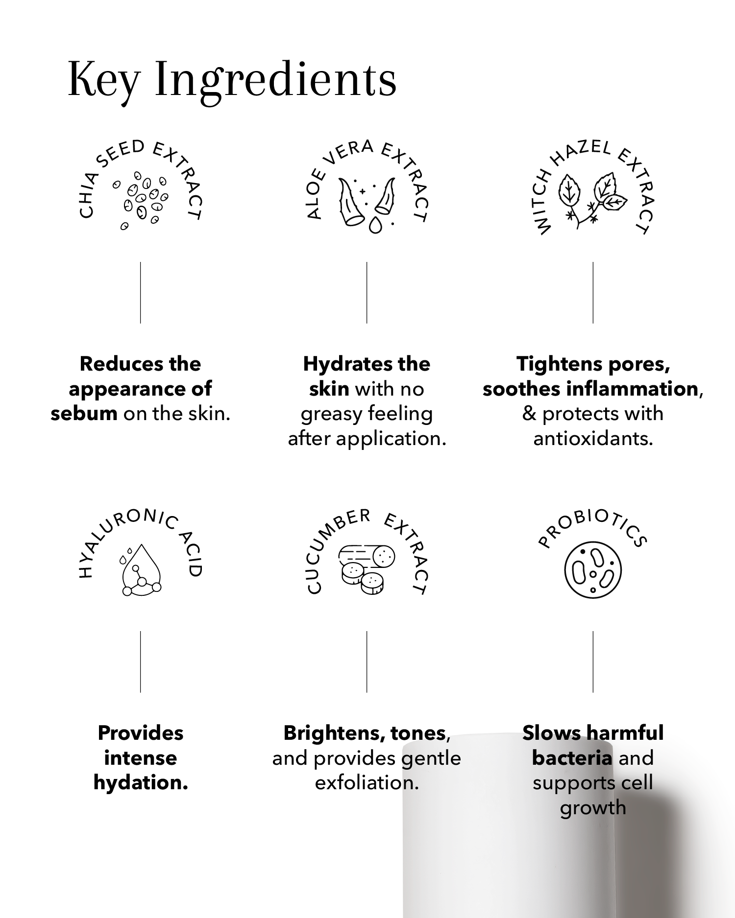 Reduces the appearance of sebum on the skin while simultaneously preventing dryness.