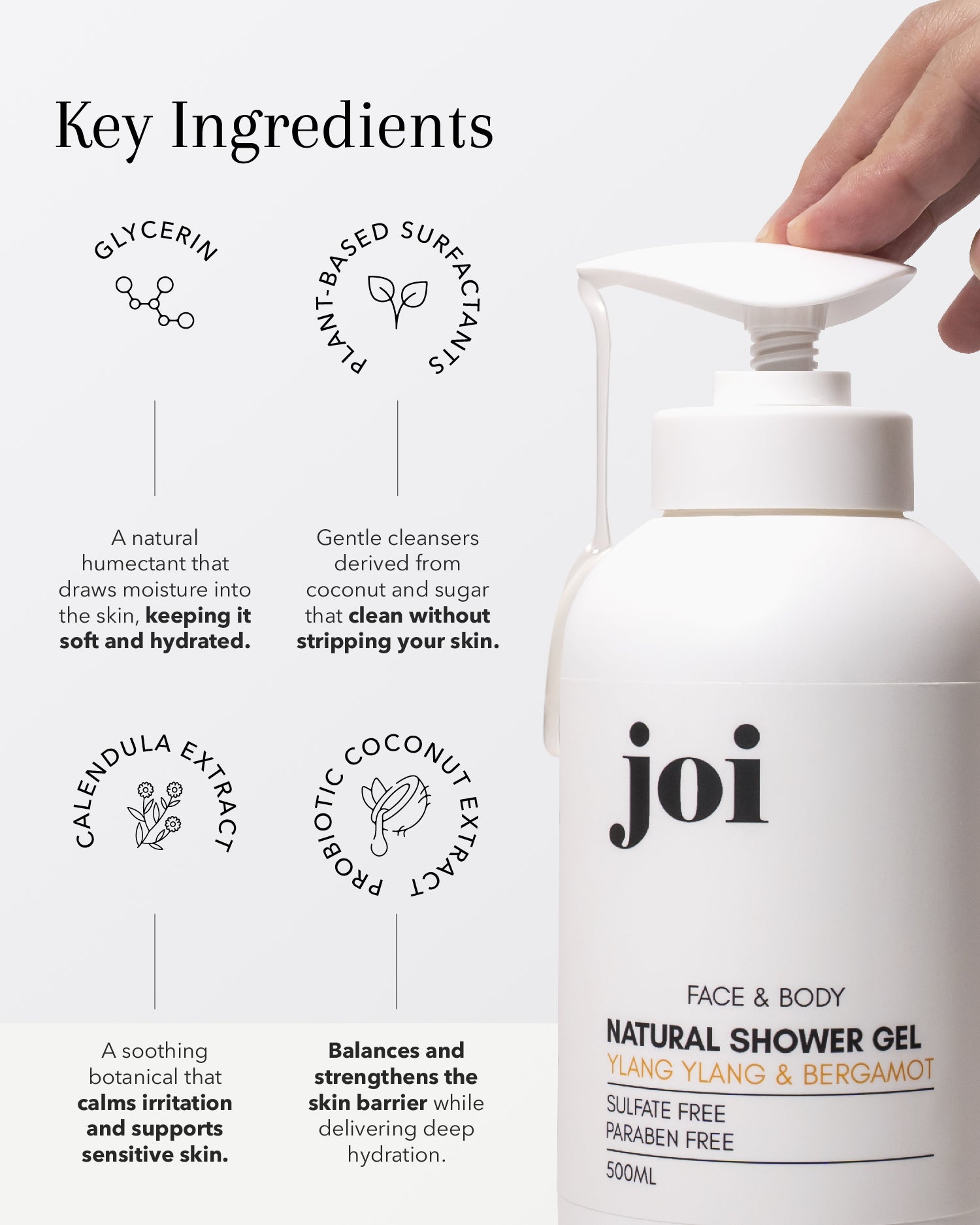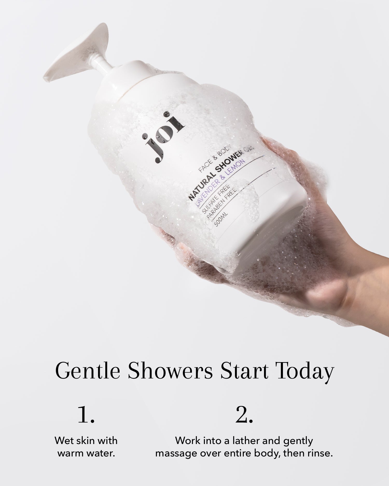 Cleanse yourself with our gentle & tear free natural shower gel. It is Sulfate & Paraben free, suitable for your face & body. It will leave your skin soft, smooth and feeling fresh. And yes, it can be used on babies and pets too.