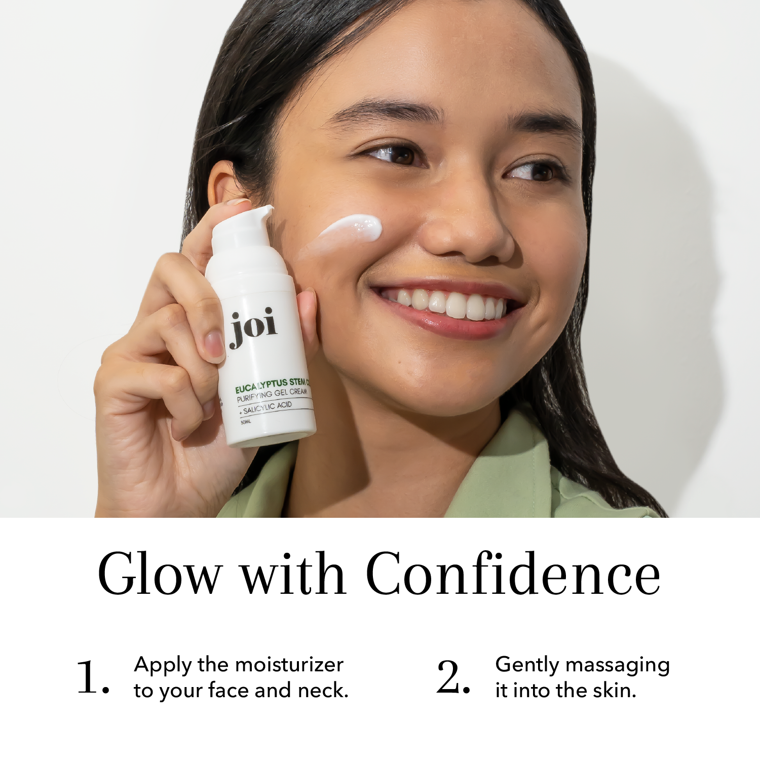 Apply daily, morning and night follow by Joi’s face oil.