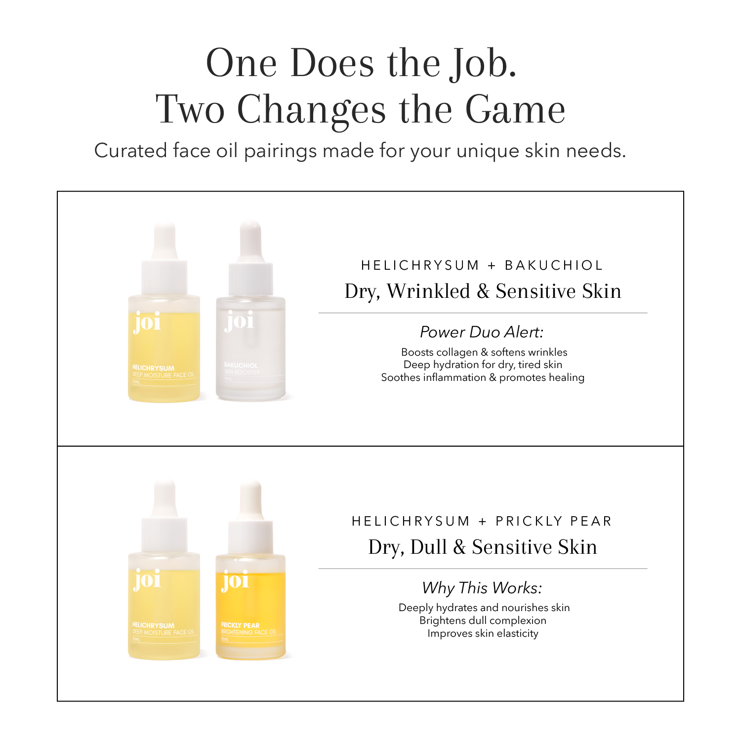 Also referred to as “Immortelle” or “Everlasting,” Helichrysum rejuvenates and restores your skin. Packed with antioxidants and omega-rich fatty acids, this face oil works deep below the skin’s surface to plump and smooth the skin giving your skin a dewy glow.